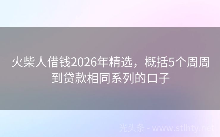 火柴人借钱2026年精选,概括5个周周到贷款相同系列的口子