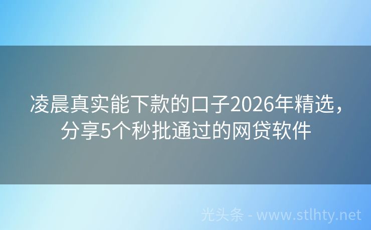 凌晨真实能下款的口子2026年精选,分享5个秒批通过的网贷软件
