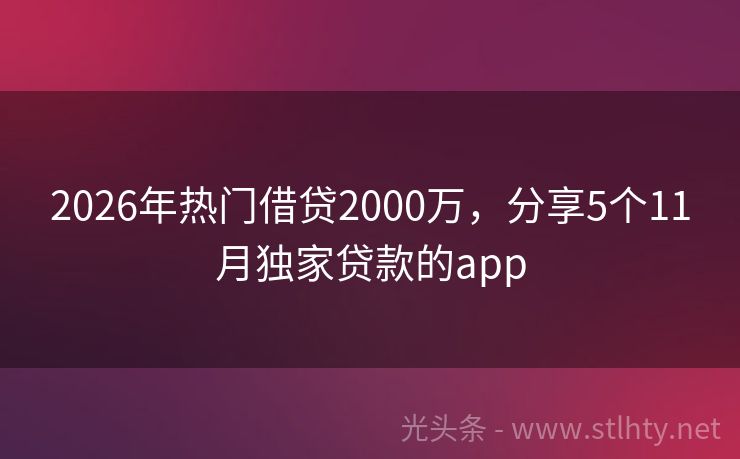 2026年热门借贷2000万,分享5个11月独家贷款的app