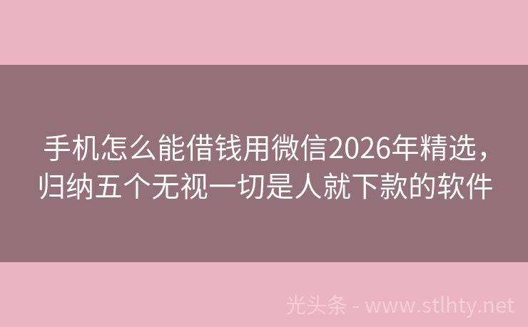 手机怎么能借钱用微信2026年精选,归纳五个无视一切是人就下款的软件
