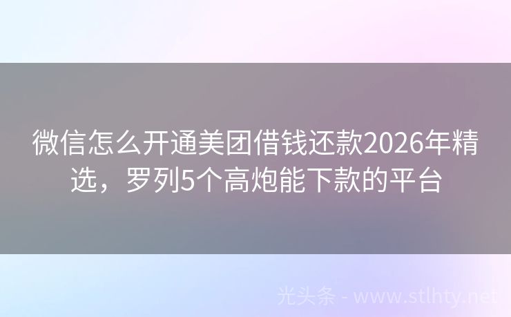 微信怎么开通美团借钱还款2026年精选,罗列5个高炮能下款的平台