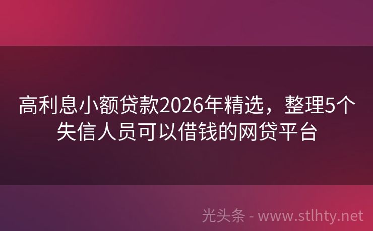 高利息小额贷款2026年精选,整理5个失信人员可以借钱的网贷平台