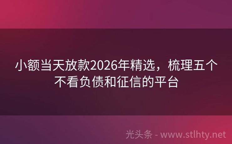 小额当天放款2026年精选,梳理五个不看负债和征信的平台
