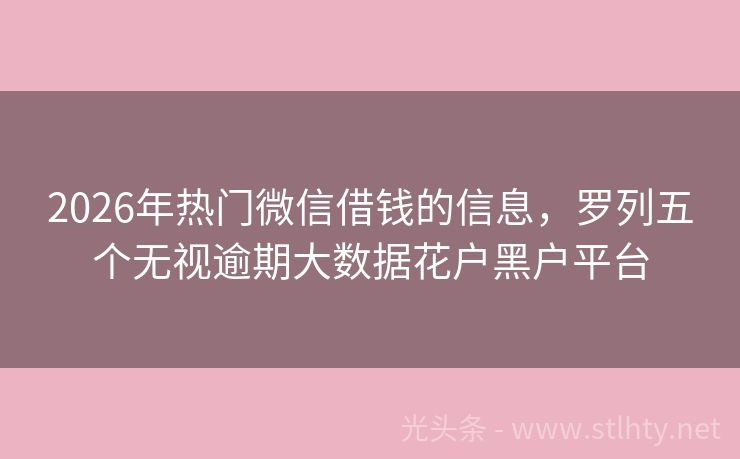2026年热门微信借钱的信息,罗列五个无视逾期大数据花户黑户平台