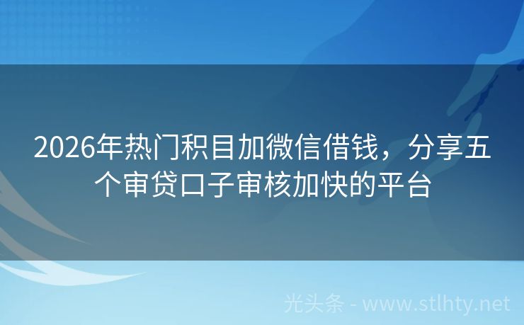 2026年热门积目加微信借钱,分享五个审贷口子审核加快的平台
