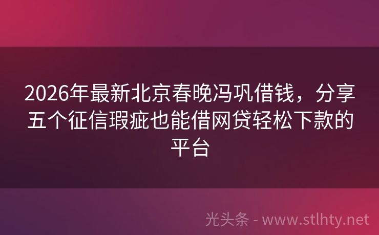 2026年最新北京春晚冯巩借钱,分享五个征信瑕疵也能借网贷轻松下款的平台