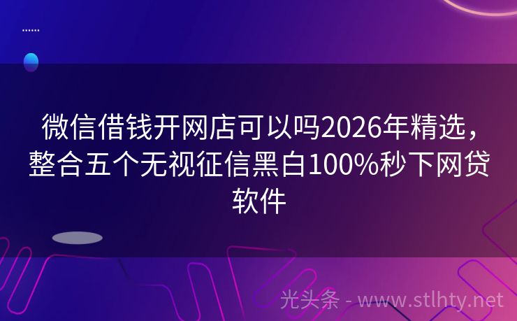 微信借钱开网店可以吗2026年精选,整合五个无视征信黑白100%秒下网贷软件