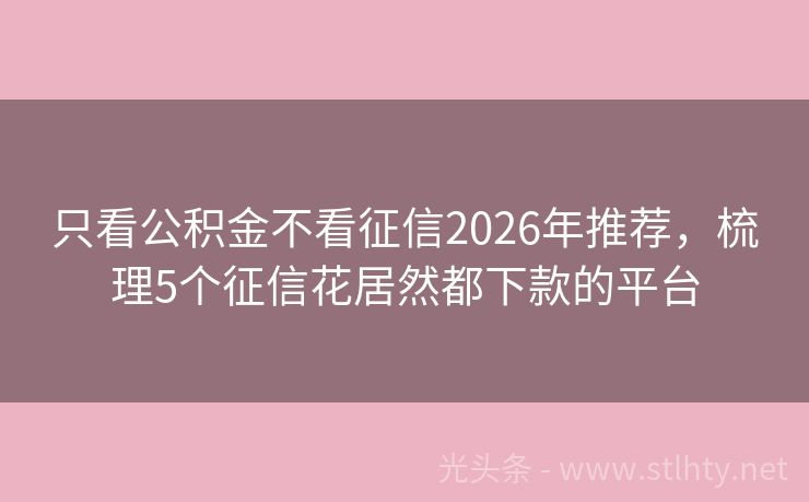 只看公积金不看征信2026年推荐,梳理5个征信花居然都下款的平台