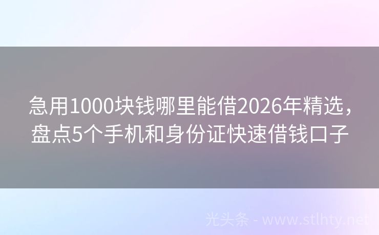 急用1000块钱哪里能借2026年精选,盘点5个手机和身份证快速借钱口子