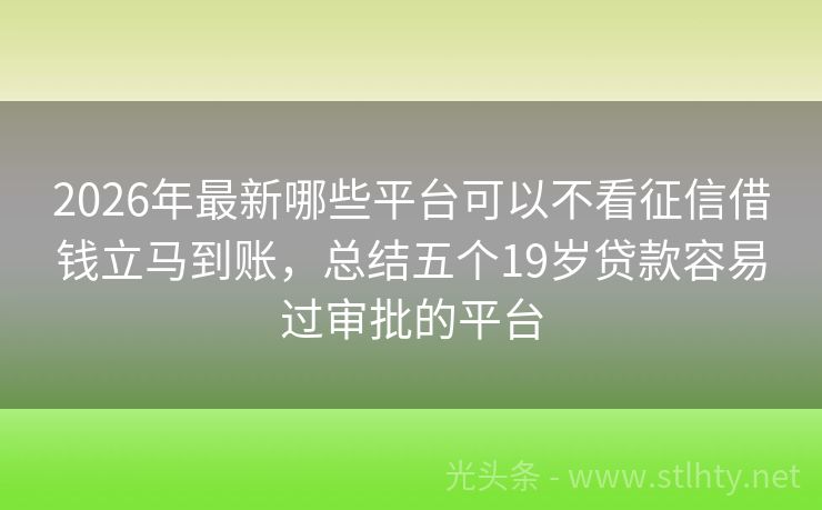 2026年最新哪些平台可以不看征信借钱立马到账,总结五个19岁贷款容易过审批的平台