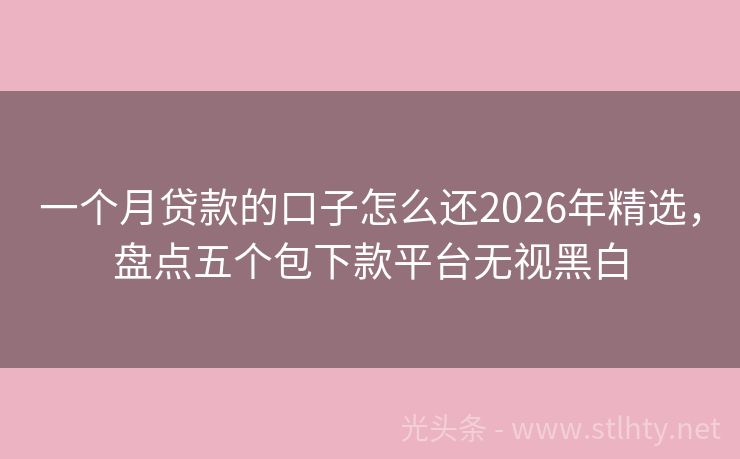 一个月贷款的口子怎么还2026年精选,盘点五个包下款平台无视黑白
