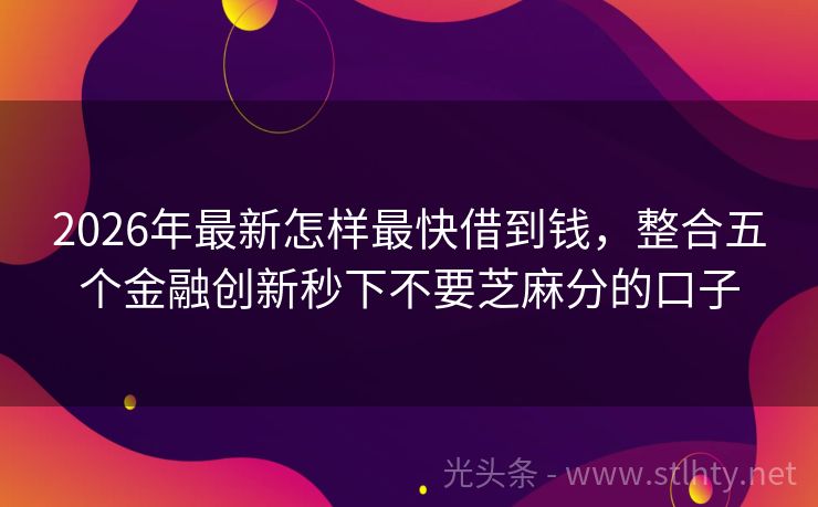 2026年最新怎样最快借到钱,整合五个金融创新秒下不要芝麻分的口子