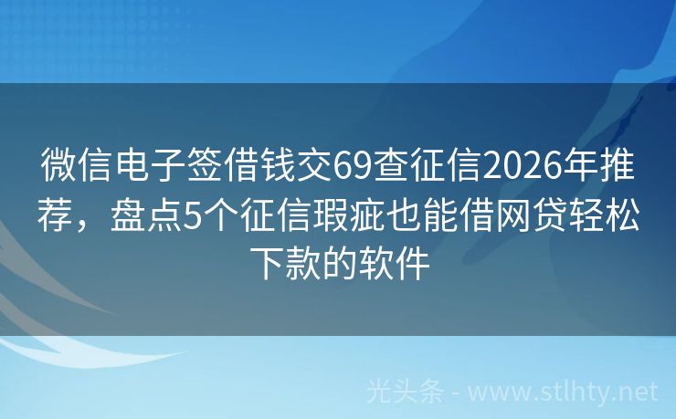 微信电子签借钱交69查征信2026年推荐,盘点5个征信瑕疵也能借网贷轻松下款的软件