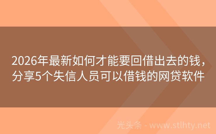 2026年最新如何才能要回借出去的钱,分享5个失信人员可以借钱的网贷软件