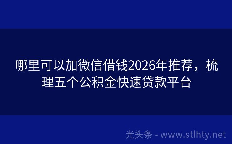 哪里可以加微信借钱2026年推荐,梳理五个公积金快速贷款平台