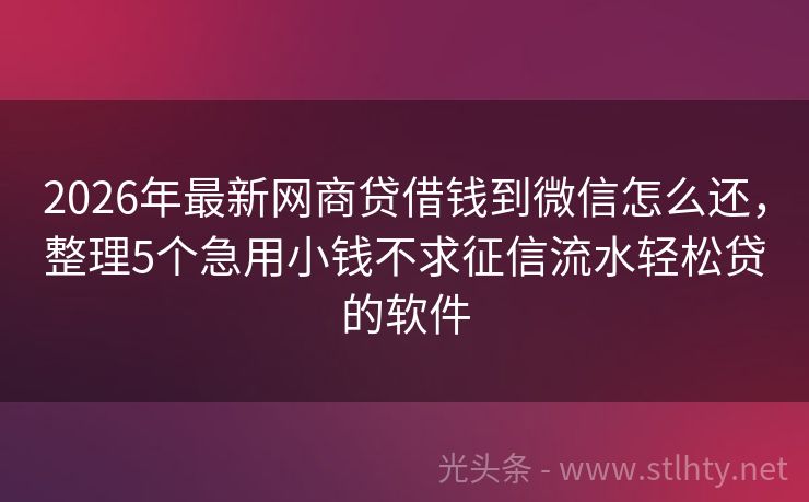 2026年最新网商贷借钱到微信怎么还,整理5个急用小钱不求征信流水轻松贷的软件