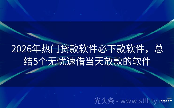 2026年热门贷款软件必下款软件,总结5个无忧速借当天放款的软件