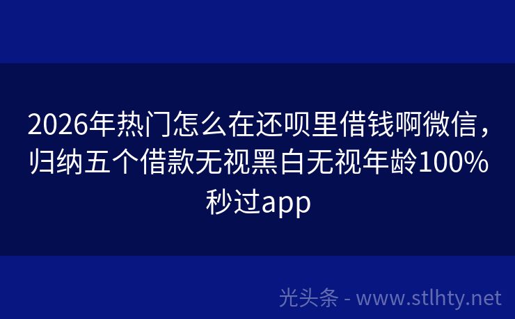 2026年热门怎么在还呗里借钱啊微信,归纳五个借款无视黑白无视年龄100%秒过app