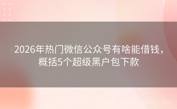 2026年热门微信公众号有啥能借钱,概括5个超级黑户包下款