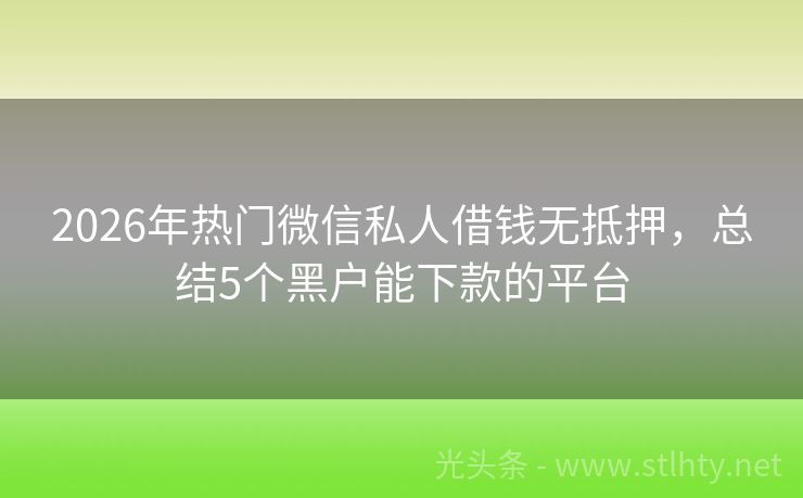 2026年热门微信私人借钱无抵押,总结5个黑户能下款的平台