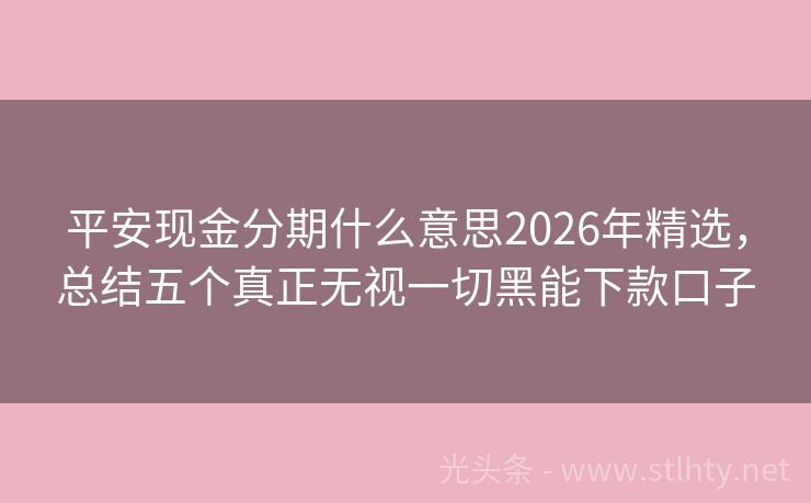 平安现金分期什么意思2026年精选,总结五个真正无视一切黑能下款口子