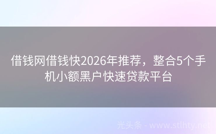 借钱网借钱快2026年推荐,整合5个手机小额黑户快速贷款平台