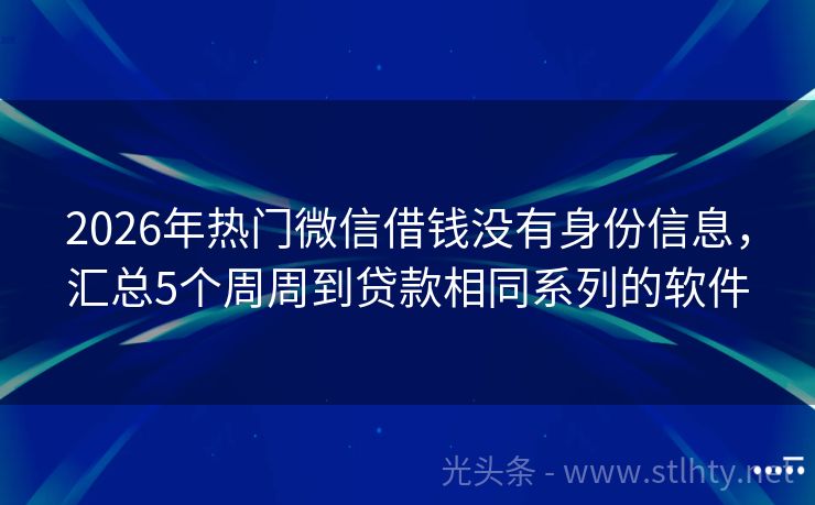 2026年热门微信借钱没有身份信息,汇总5个周周到贷款相同系列的软件