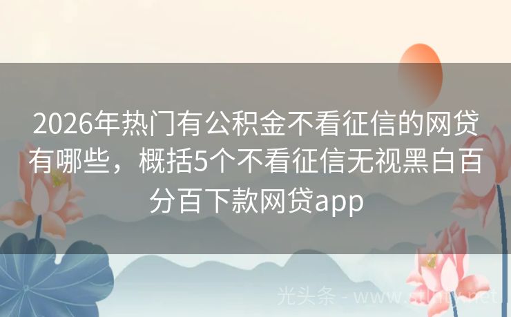 2026年热门有公积金不看征信的网贷有哪些,概括5个不看征信无视黑白百分百下款网贷app