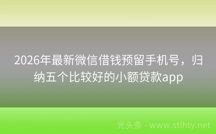 2026年最新微信借钱预留手机号,归纳五个比较好的小额贷款app