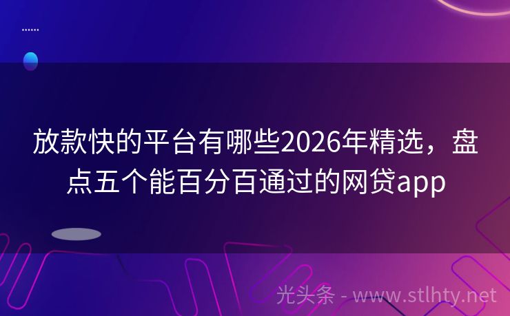 放款快的平台有哪些2026年精选,盘点五个能百分百通过的网贷app