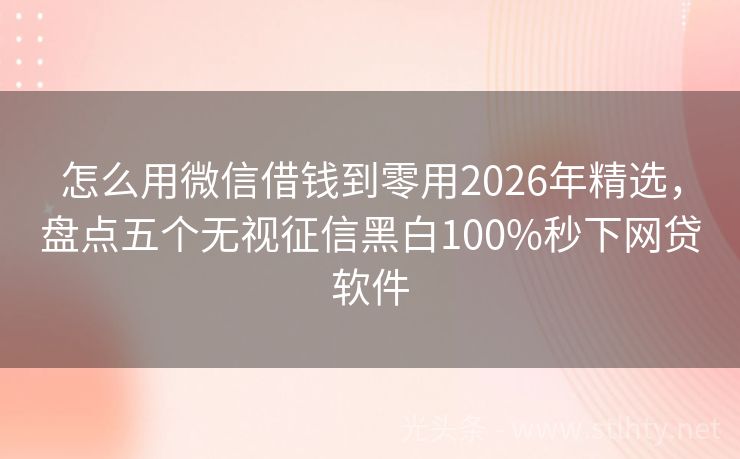 怎么用微信借钱到零用2026年精选,盘点五个无视征信黑白100%秒下网贷软件