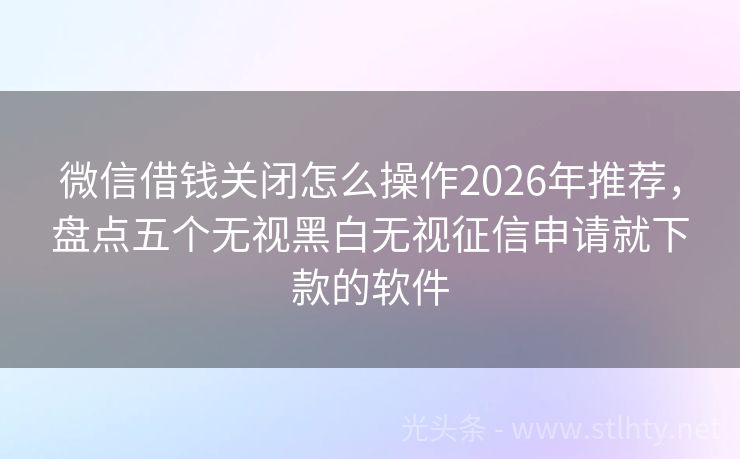 微信借钱关闭怎么操作2026年推荐,盘点五个无视黑白无视征信申请就下款的软件