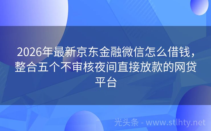 2026年最新京东金融微信怎么借钱,整合五个不审核夜间直接放款的网贷平台