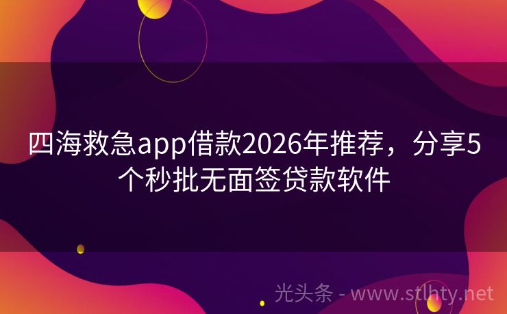 四海救急app借款2026年推荐,分享5个秒批无面签贷款软件