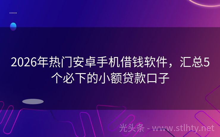 2026年热门安卓手机借钱软件,汇总5个必下的小额贷款口子
