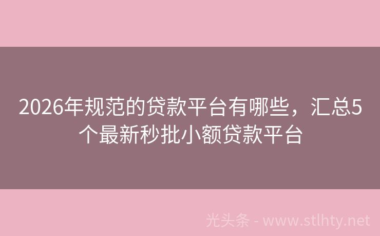 2026年规范的贷款平台有哪些,汇总5个最新秒批小额贷款平台