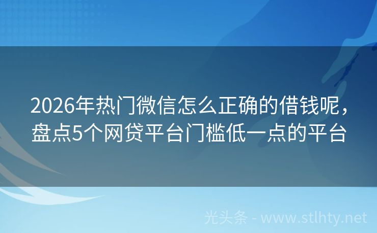 2026年热门微信怎么正确的借钱呢,盘点5个网贷平台门槛低一点的平台