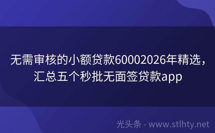 无需审核的小额贷款60002026年精选,汇总五个秒批无面签贷款app
