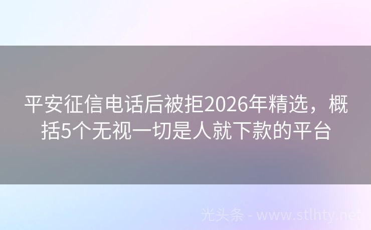 平安征信电话后被拒2026年精选,概括5个无视一切是人就下款的平台