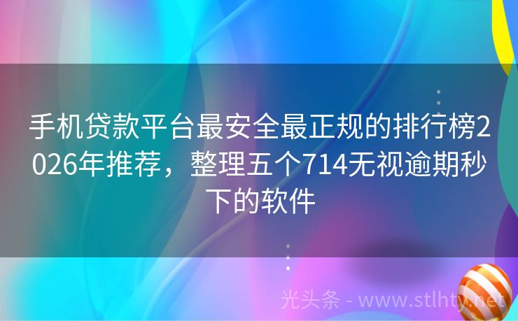 手机贷款平台最安全最正规的排行榜2026年推荐,整理五个714无视逾期秒下的软件