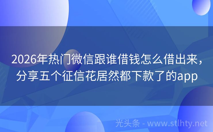 2026年热门微信跟谁借钱怎么借出来,分享五个征信花居然都下款了的app