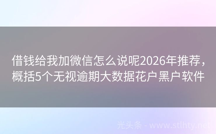 借钱给我加微信怎么说呢2026年推荐,概括5个无视逾期大数据花户黑户软件