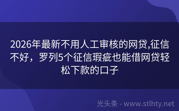 2026年最新不用人工审核的网贷,征信不好,罗列5个征信瑕疵也能借网贷轻松下款的口子