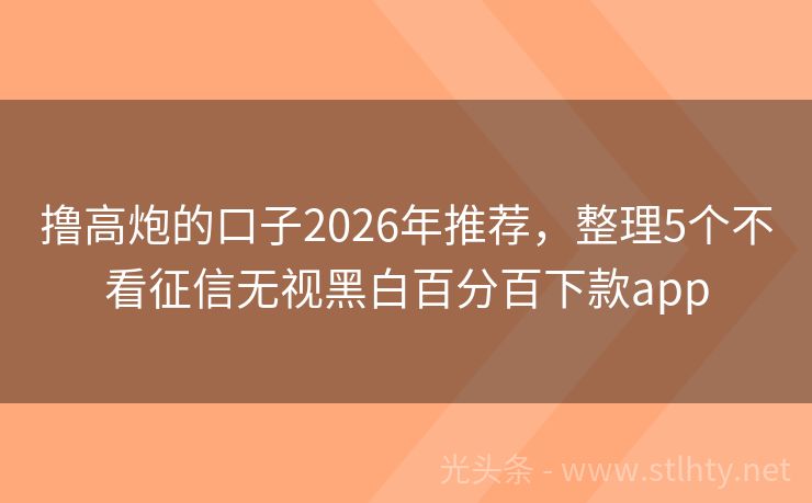 撸高炮的口子2026年推荐,整理5个不看征信无视黑白百分百下款app