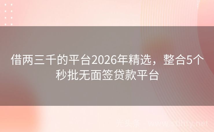 借两三千的平台2026年精选,整合5个秒批无面签贷款平台