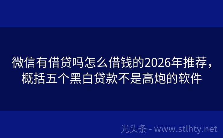 微信有借贷吗怎么借钱的2026年推荐,概括五个黑白贷款不是高炮的软件
