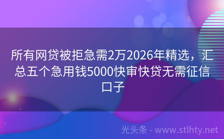 所有网贷被拒急需2万2026年精选,汇总五个急用钱5000快审快贷无需征信口子