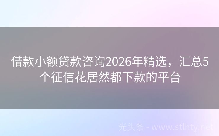借款小额贷款咨询2026年精选,汇总5个征信花居然都下款的平台