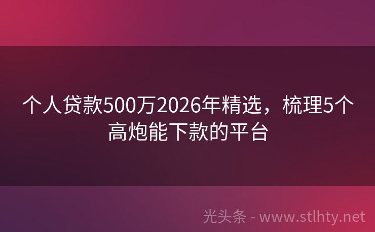 个人贷款500万2026年精选,梳理5个高炮能下款的平台
