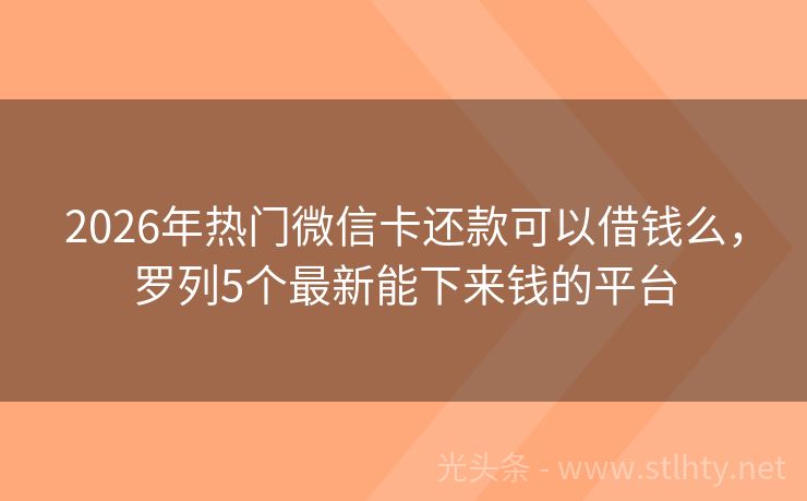 2026年热门微信卡还款可以借钱么,罗列5个最新能下来钱的平台